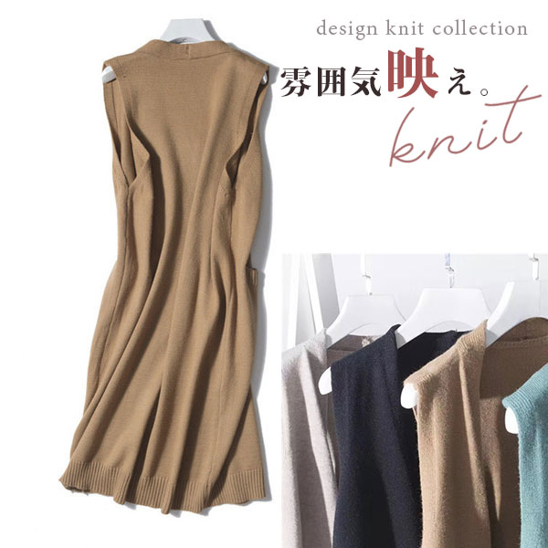 ニットベスト レディース ベストセーター ロング丈 ジレカーディガン ロングジレ ノーボタン レイヤード 秋 体型カバー 通勤 着痩せ 重ね着