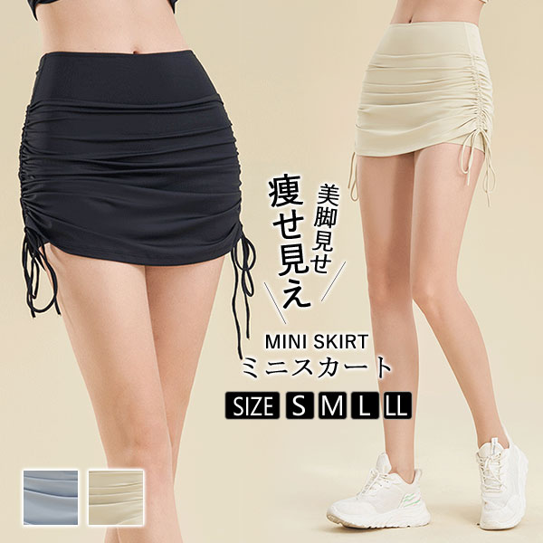 ミニスカート スカート タイトスカート レディース ペチパンツ ボトムス ドローコード シンプル 膝上丈 ミディアム丈 カジュアル きれいめ 着痩せ
