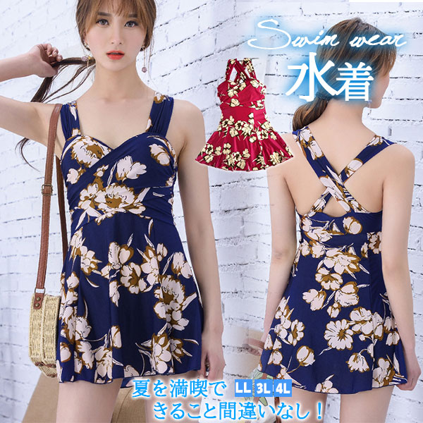 水着 ワンピース 体型カバー レディース 花柄 スイムウェア オフショルダー セクシー オールインワン 大きいサイズ 20代 30代 40代 ママ