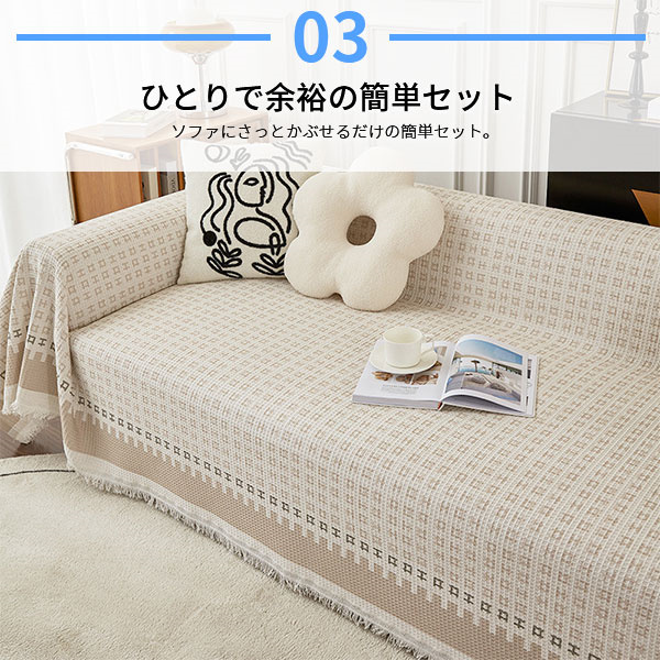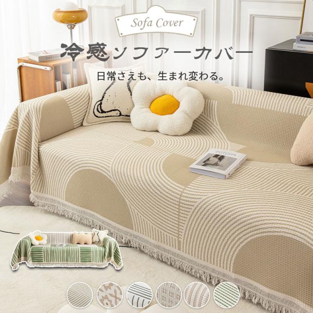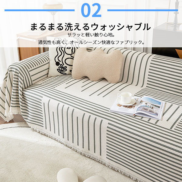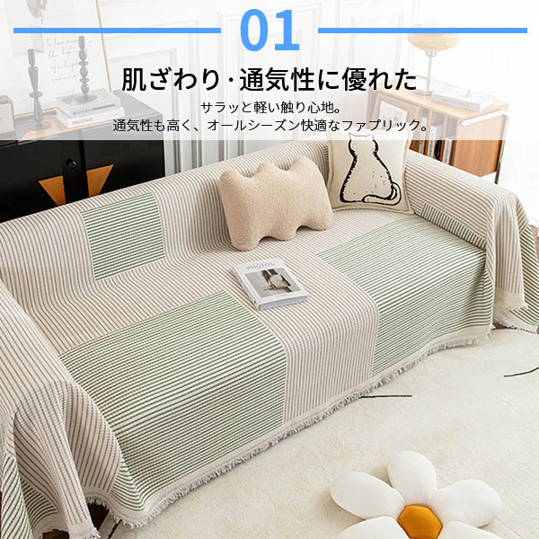ソファーカバー 2人掛け 夏用 マルチカバー ボーダー フリンジ ソファー マルチカバー 滑り止め 汚れ防止 傷防止 爪とぎ防止 四季適用 涼しい