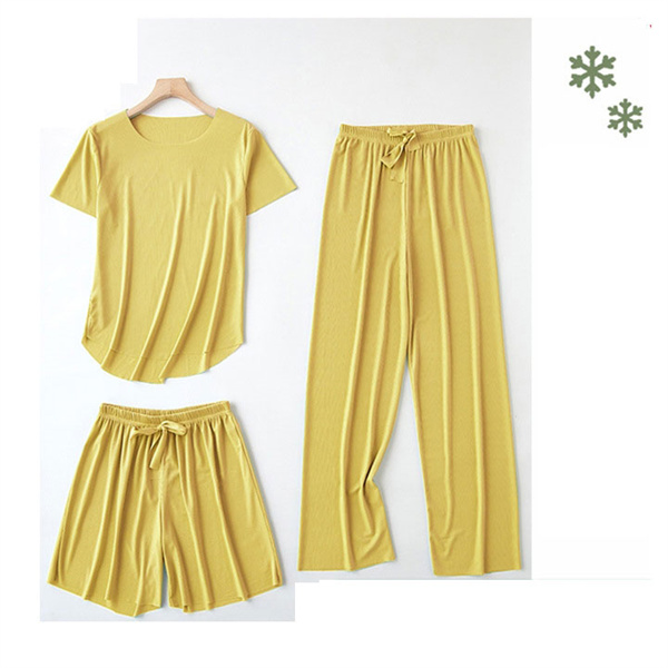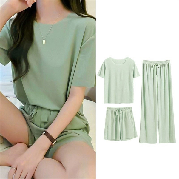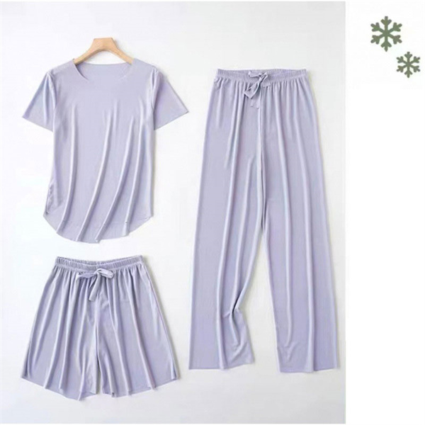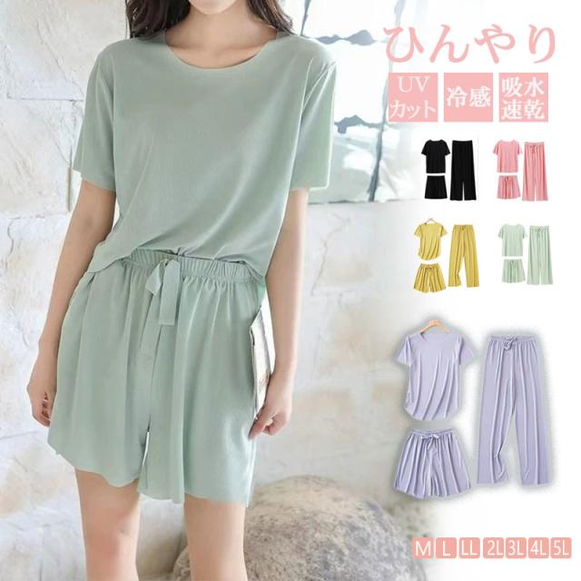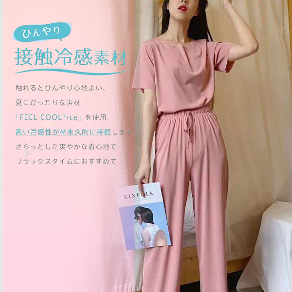 ルームウェア パジャマ 3点セット 半袖 レディース 春夏 冷感素材 部屋着 無地 ナイトウェア 綿 上下セット ロングパンツ 薄手 可愛い 寝間着