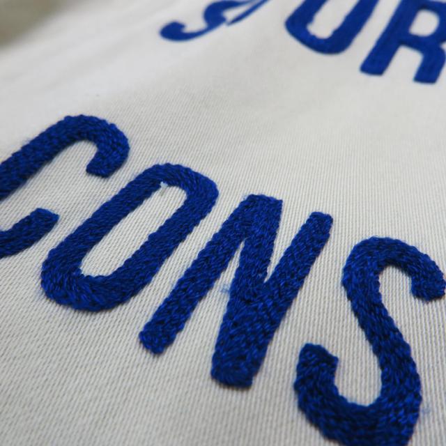 当時のデザインと同様にメーカー販促用デザインをイメージしたチェーン刺繍が背面から確かな存在感を放つ。