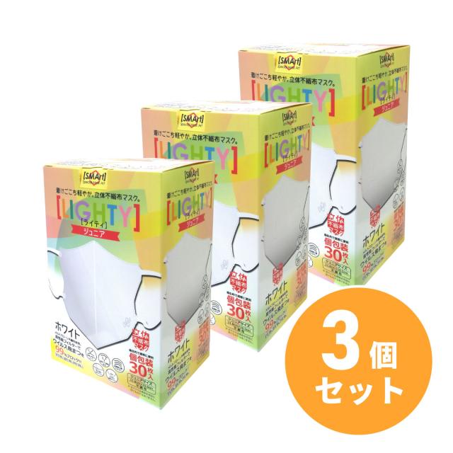 【在庫有・即納】 まとめ買いアドバンス 立体不織布マスク【LIGHTY】ジュニアBOX 30枚入り ホワイト×3セット ジュニアマスク 個包装