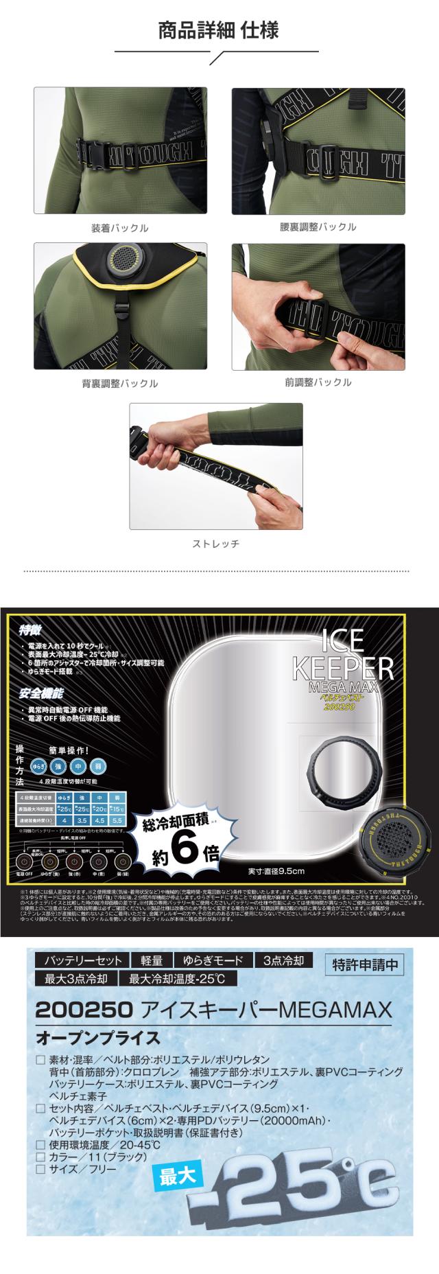 ペルチェベスト 冷却作業着 アタックベース ATACK BASE アイスキーパーメガマックス 200250 作業着 作業服 春夏