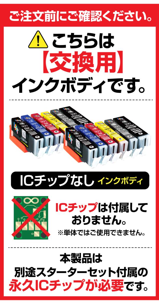 | 繰り返し使える永久ICチップ専用の交換用互換インクカートリッジです。 別途永久ICチップ付きスターターセットが必要になります。 本製品だけでは、ご使用になれませんので予めご了承ください。 |