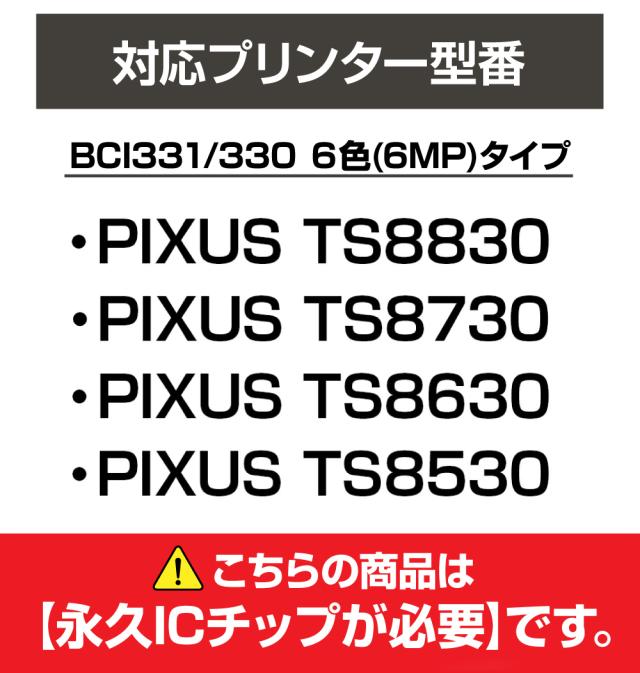 【永久ICチップ専用交換用ボディ×2セット】BCI-331+330 / 6MP 大容量 6色×2セット 【こちらの製品だけでは使用できません。】 キャノン Canon エコロジー ゴミ削減 BCI 331 330 6MP PIXUS TS8830 / PIXUS TS8730 / PIXUS TS8630 / PIXUS TS8530