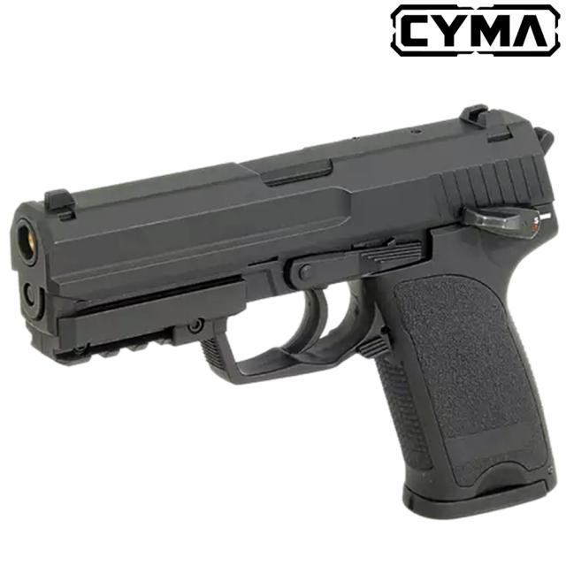 実銃のUSPは軽量なポリマー(樹脂)製フレームを採用し、世界で初めてアンダーレイルを標準装備するなど、以後登場するタクティカルハンドガンのスタイルに大きな影響を与えたハンドガンだ。 もともとはアメリカ市場向けに開発されたモデルであり、USPの操作性は、アメリカで人気が高いガバメントなどのハンドガンに近いものとなっている。 CYMAのこのモデルはメタルスライドとなっており、質感や重量感の良いモデルとなっている。