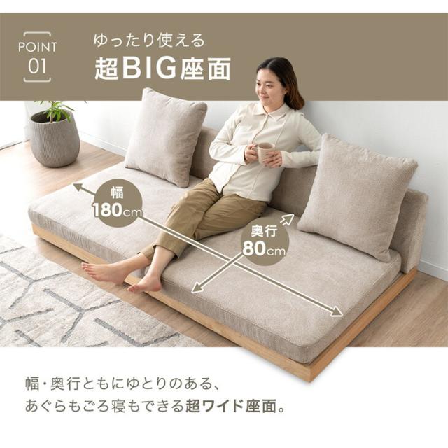 座面の中まで洗える ソファ カバーリング 幅180cm 3人掛けソファ ウッドフレーム フロアソファ ローソファ ソファー ローソファー フロアソファー ソファベッド 3人掛け 2人掛け 木製 フレーム 北欧 おしゃれ 洗える ペット