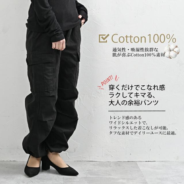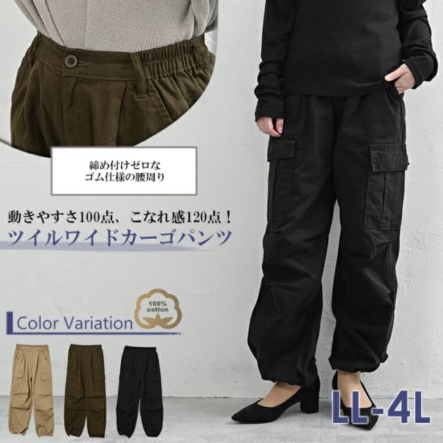 大きいサイズ レディース ロング丈パンツ ロングパンツ ツイルワイドカーゴパンツ パラシュートパンツ ワイドパンツ コットンパンツ バックウエストゴム ジップフライ ロング丈 ミモレ丈 10分丈 12分丈 カーゴポケット 無地 股上深め 股下70cm ドロスト裾 春服 秋服 冬服 春物 秋物 冬物 春パンツ 秋パンツ 冬パンツ コットン100% cotton100 長パンツ 長ズボン 体型カバー 下半身カバー 美脚 細見え 大人 カジュアル ミリタリー ナチュラル おしゃれ きれいめ かわいい かっこいい 着こなし コーデ 定番 春コーデ 秋コーデ 冬コーデ ファッション 大きめ 女性 婦人用 ミセス 30代 40代 50代 2025 春新作 春 秋 冬 黒 緑 LL 3L 4L 13号 15号 17号 on-saw-bt0345