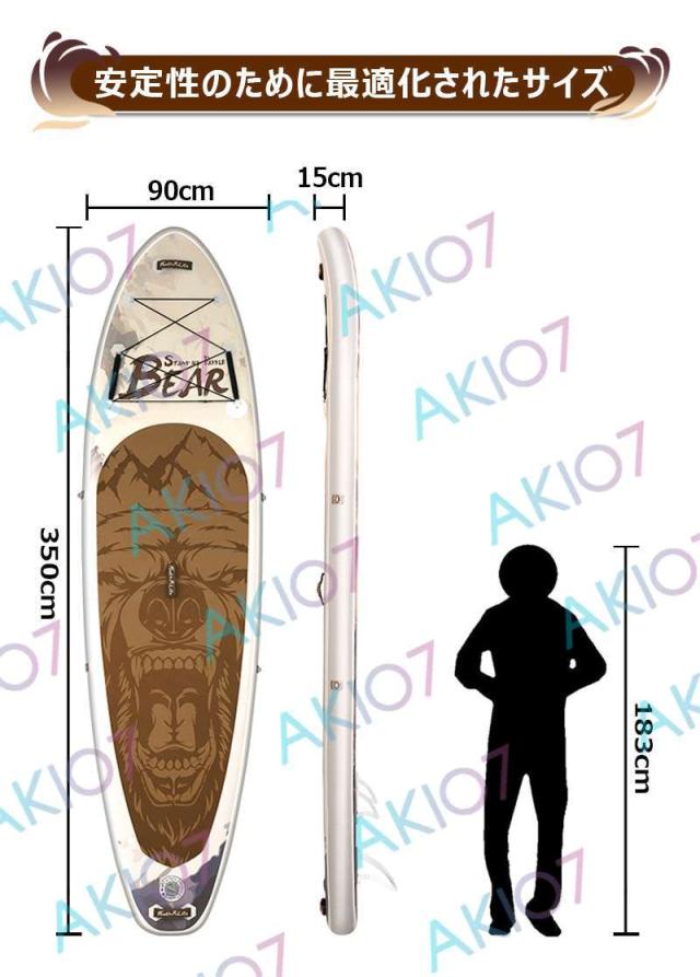【長350cmx幅90x厚15cm】サップボード インフレータブルSUPボード 調節可能パドル 肩掛けバンド マリンスポーツ スタンドアップパドルボード 超広い 初心者 中級者 上級者 安全荷重200kg 釣り 水上散歩 ヨガ サップボード バックパック付き フィン付き