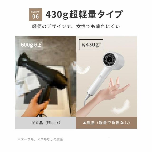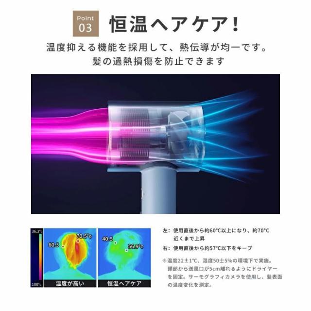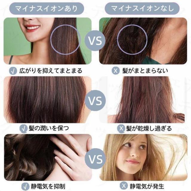 【マイナスイオン機能】損傷した髪を修復し、髪の表面の摩擦力を減らして、紫外線の損傷を減らして、髪をケアすると同時に抜け毛を防ぎます。