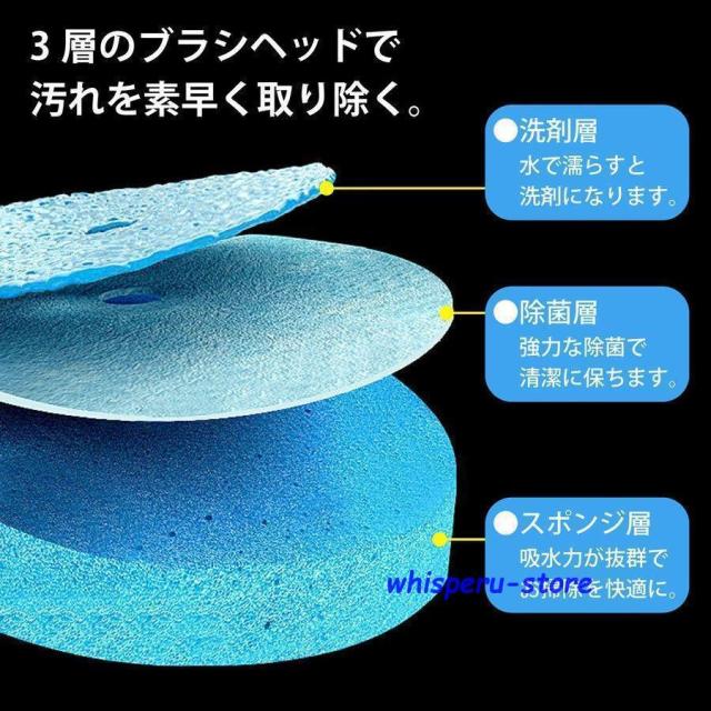 水に濡らすとブラシのヘッドの洗剤が溶け、そのままお掃除していただけます。