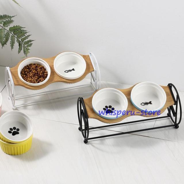 猫 犬 フードボウル 餌入れ 猫用食器 犬用食器 ペットボウル 餌皿 水飲み エサ入れ 食べやすい エサ皿 餌台 おしゃれ スタンド付き 陶器 中型犬