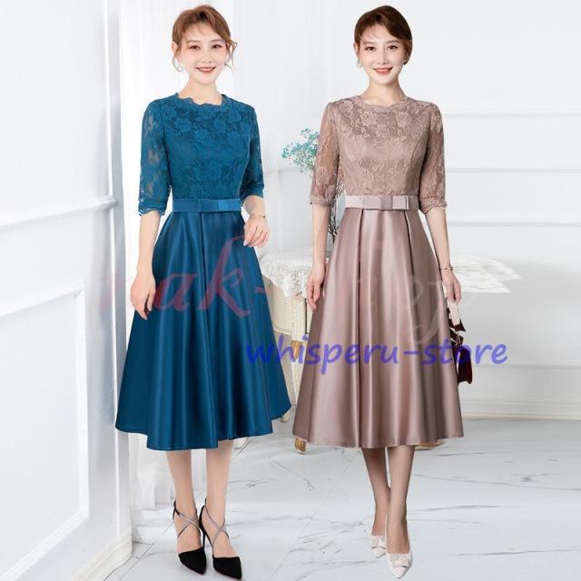 パーティードレス 結婚式 服装 ドレス ワンピース 20代 10代 30代 nakフォーマルドレス 50代 女性 冬 赤 お呼ばれ 母親 親族 袖あり フォーマルワンピース