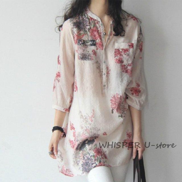七分袖シャツ レディース チュニック 夏 大きいサイズ 花柄 軽量 コットン 長袖 30代 40代 50代 60代