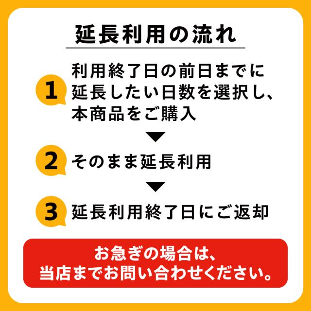 レンタル期間の延長をご希望の場合は、レンタル終了予定日の前日16時までに延長専用商品をご購入ください。
