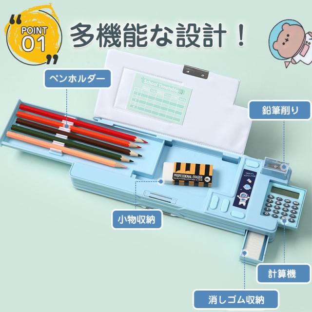 筆箱 小学生 ペンケース 両面筆入 鉛筆削り付き 耐衝撃 大容量 中学生 高校生 多機能 筆入れ 小物収納 男の子 女の子 子供