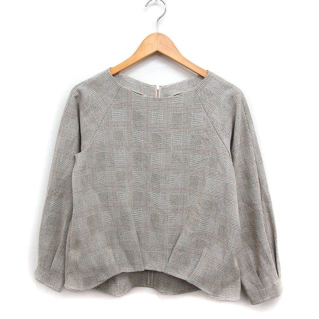 【中古】オフオン ofuon グレンチェック タックイン ブラウス 長袖 ライトグレー /FT44 レディース