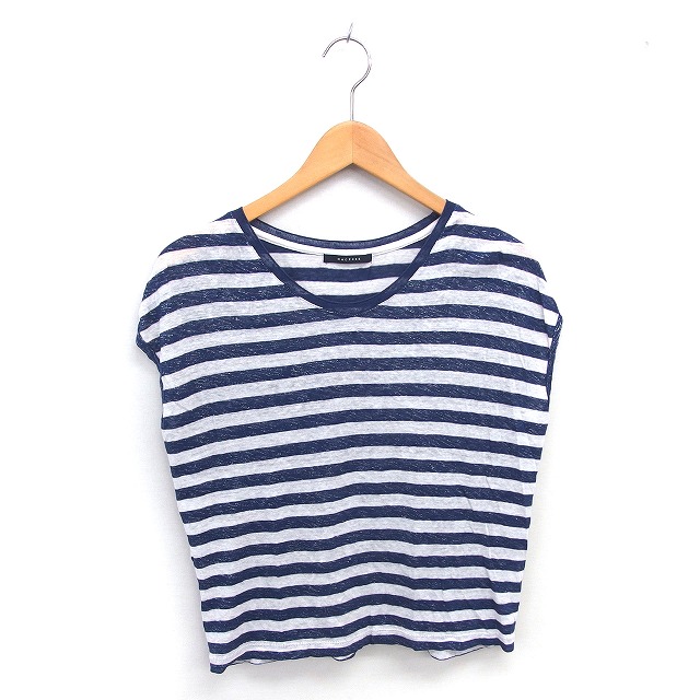 【中古】マカフィー トゥモローランド カットソー Tシャツ ボートネック ボーダー リネン ラメ ノースリーブ 1 青 白