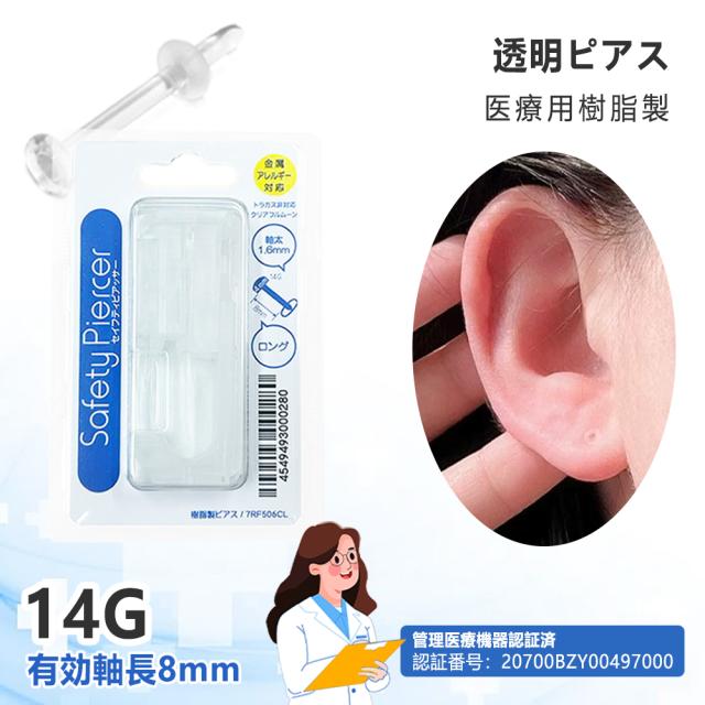 【初心者向け・アメリカ製】 透明ピアッサー 14G 1.6mm 耳たぶ用 片耳 無痛ピアッサー 医療用樹脂製 滅菌済 金属アレルギー対応 軟骨ピアッサー セーフティピアッサー 透明ピアス 瞬間ピアッサー 耳たぶ 使い捨て 瞬間ピアッサー
