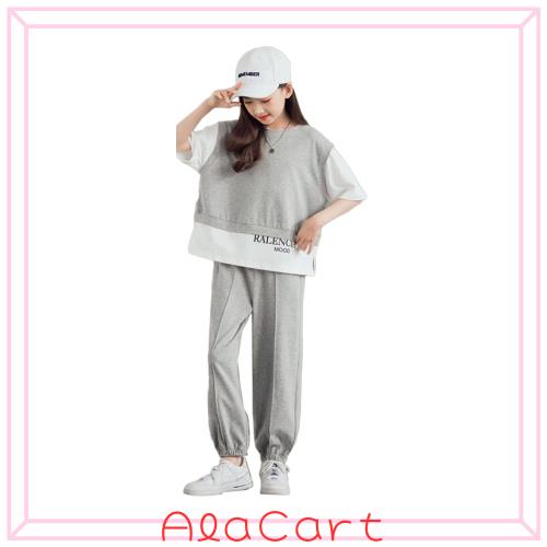 ◆商品名:[CREAM] 子供服 キッズ 女の子 ジャージ 上下セット 半袖シャツ パンツ ガールズ 2点セット スポーツウェア ロングパンツ 運動着 スウェ