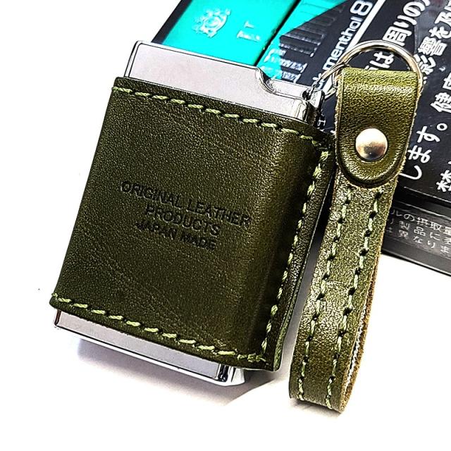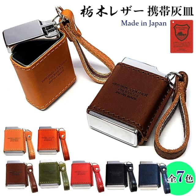 携帯灰皿 栃木レザー 本革 日本製 角型 箱入り 牛革 7カラー キャメル レッドブラウン ブラウン カーキ レッド ブラック ネイビー コンパクト カラビナ付き