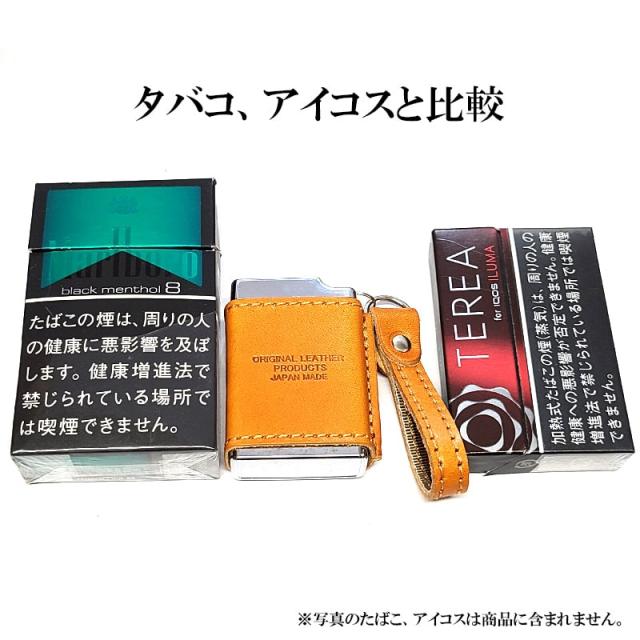 アルミダイキャストにレザーを組み合わせたこちらの携帯灰皿は、スマートなフォルムの中にも革のぬくもりを感じさせる大人の佇まい。