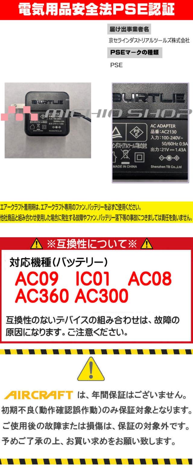 [即納]バートル BURTLE 急速充電器(AC09・IC01・AC08・AC360・AC300専用) AC09-3 エアークラフト AIRCRAFT 京セラ製 2025年春夏新作