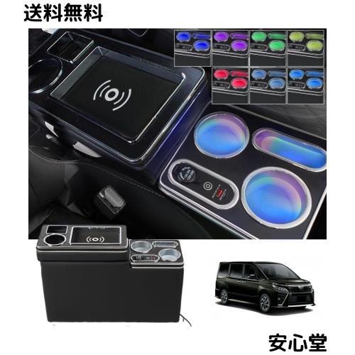 WALKEY【ワイヤレス充電 7色変換】コンソールボックス ヴォクシー ノア エスクァイア 適用 60系 70系 80系 ガソリン 車 アームレスト VOX