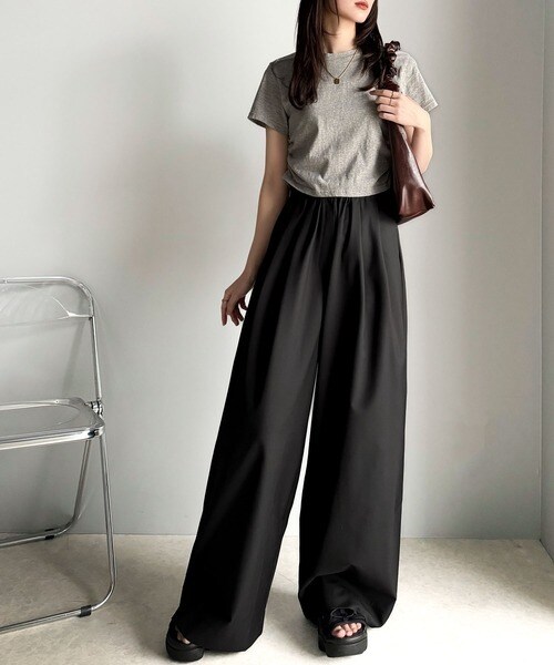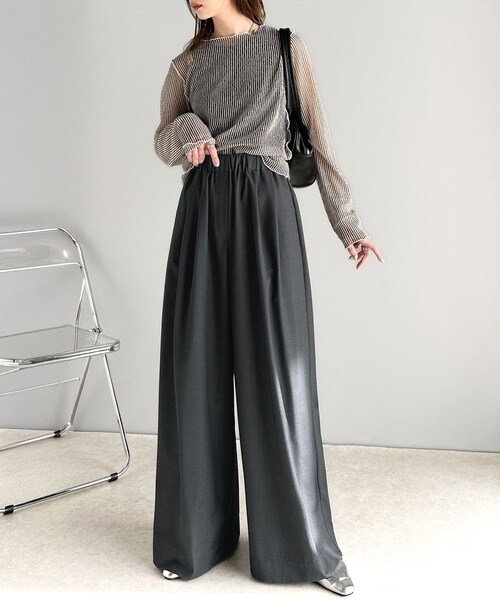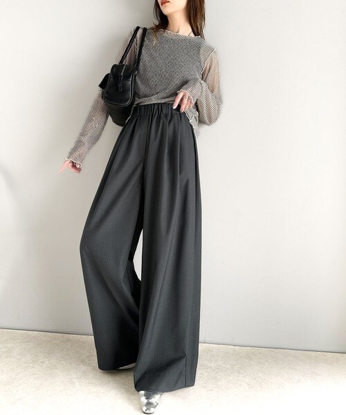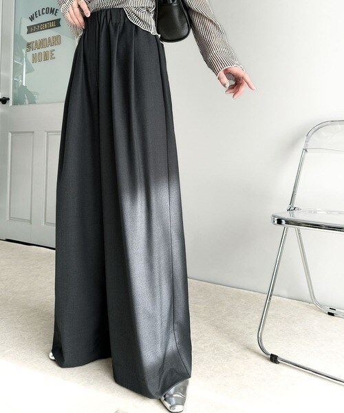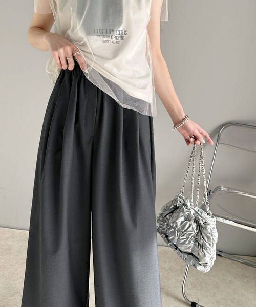 ワイドシルエットが特徴のこのパンツは、足元にゆとりを持たせ、リラックスした着こなしを実現。