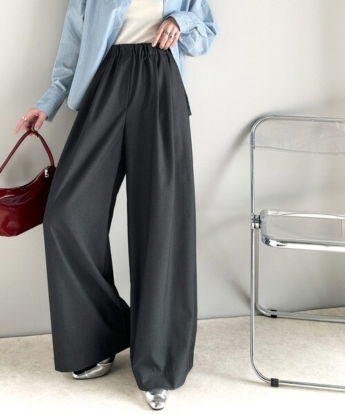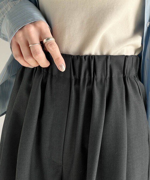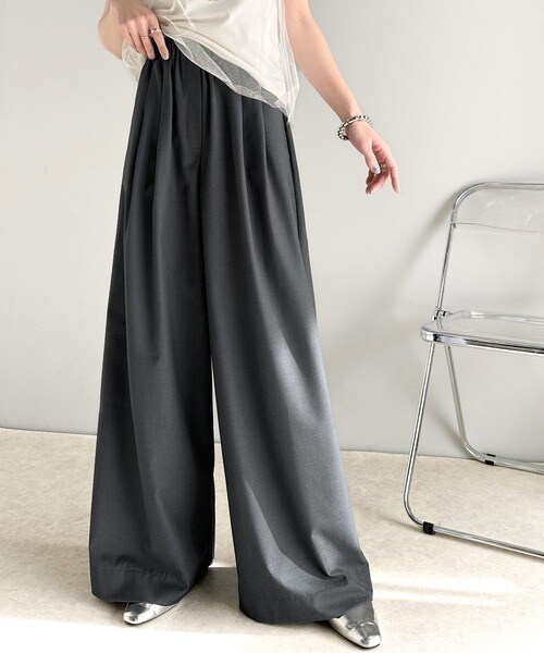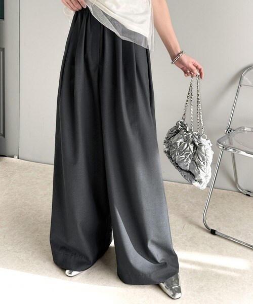 深めの2タックとギャザーが入ったきれいめスラックスパンツ。