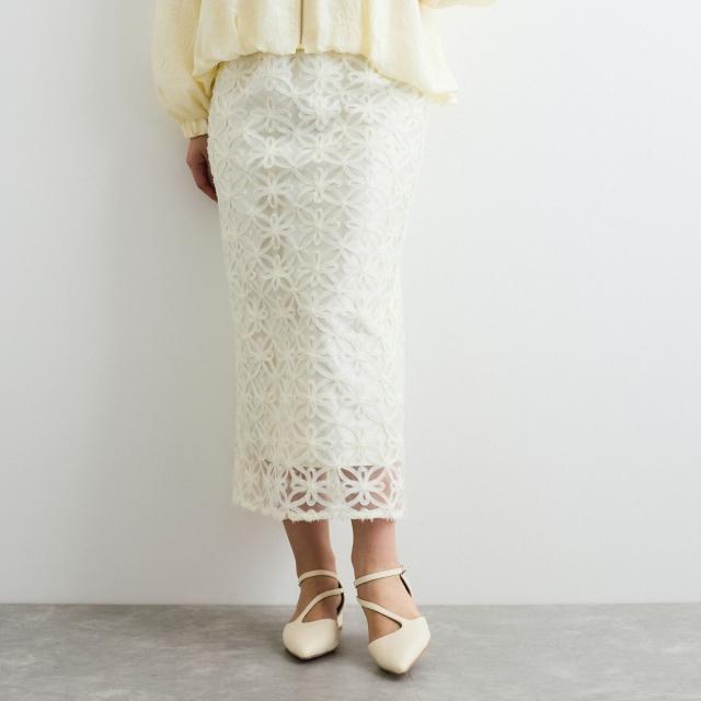 ーアイコニックなフラワー刺繍にこころときめくIラインスカートー
