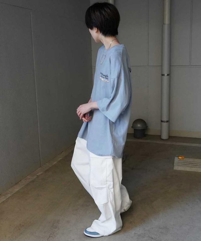 デニムワイドパンツやパラシュートパンツ、カーゴパンツ、スウェットパンツを着用したカジュアルなストリートスタイルが相性抜群。