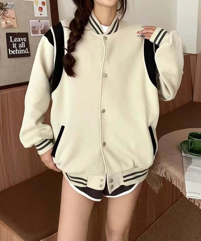 スポーティーなリブデザインが特徴のスタジャン。袖と裾のリブがアクセントとなり、全体的にスタイリッシュでありながらカジュアルな印象に。フロントにはボタンが施され、シンプルながらもデザイン性の高いアイテムです。