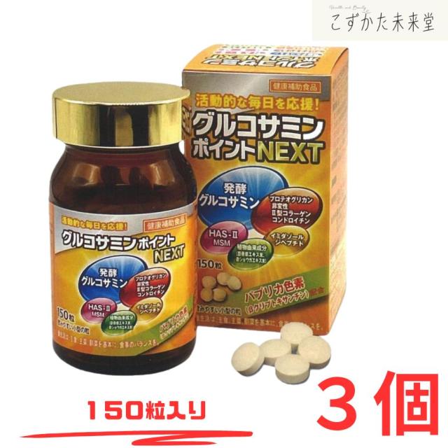 グルコサミンポイントNEXT 150粒 3セット 発酵グルコサミン プロテオグリカン コンドロイチン イミダゾールジペプチド コラーゲン 富山めぐみ製薬