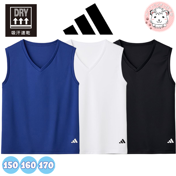 グンゼ アディダス Vネック スリーブレス 2枚組 吸汗速乾 ドライ メッシュ 150cm/160cm/170cm | ロゴ ボーイズ キッズ ジュニア ポリエステル 下着 肌着 インナー AP08752-852 GUNZE adidas