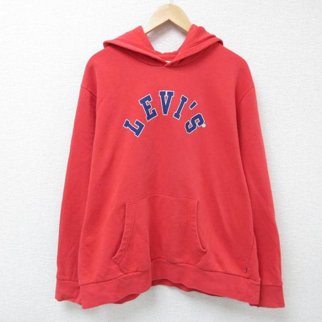 古着 リーバイス Levis 長袖 スウェット パーカー メンズ 00年代 00s ビッグロゴ 大きいサイズ 赤 レッド XLサイズ 中古 スエ 中古 古着