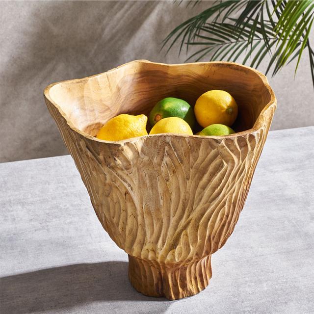 ボウル 木製 チーク ウッド トレイ トレー デコレーション テーブル ディスプレイ アート 収納 小物 入れ フルーツ バスケット オブジェ 14053