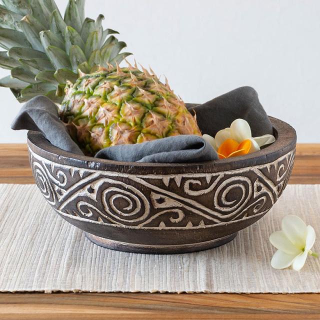 バリ島の職人がひとつずつ彫りを施し、繊細な表情の器に仕上げました。