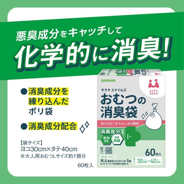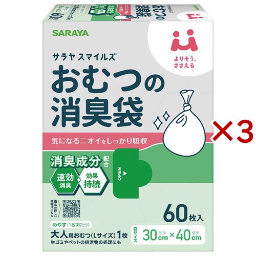 サラヤスマイルズ おむつの消臭袋(60枚入×3セット)[消臭除菌・清拭剤]