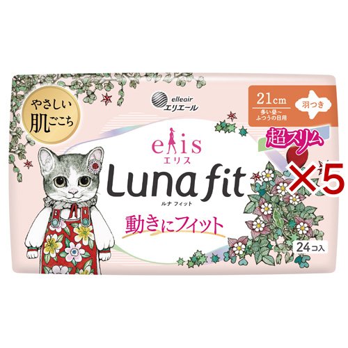 エリス 素肌のきもち ルナフィット 超スリム 多い昼〜普通の日 羽 21cm ヒグチユウコ(24枚入×5セット)[ナプキン 普通〜多い日用 羽付き]