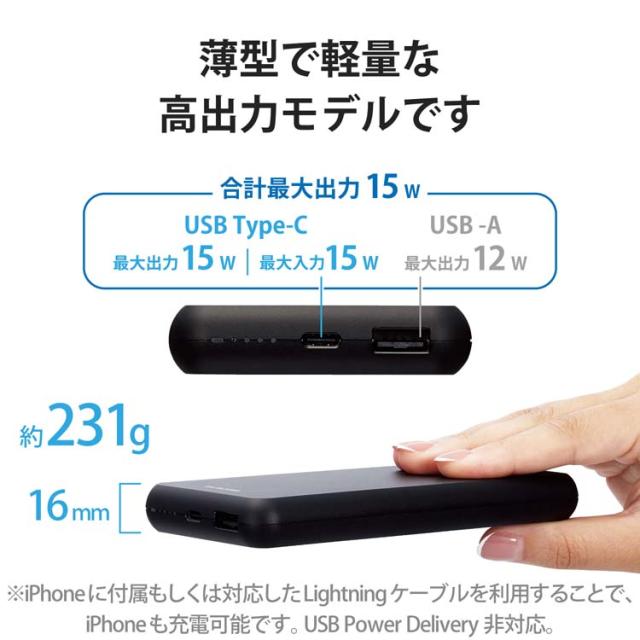 【エレコム 大容量 モバイルバッテリー Type-C 10000mAh 15w 充電器 iPhone ブラックの商品詳細】