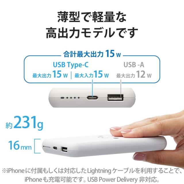 【エレコム モバイルバッテリー 大容量 10000mAh 15w 充電器 iPhone ホワイトフェイスの商品詳細】