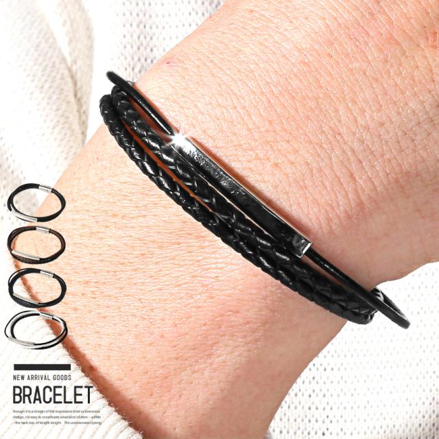 ブレスレット メンズ メンズブレスレット レザーブレスレット 編み込み 編み上げ 牛革 レザー【レザー編み込みブレスレット】 aa-3395