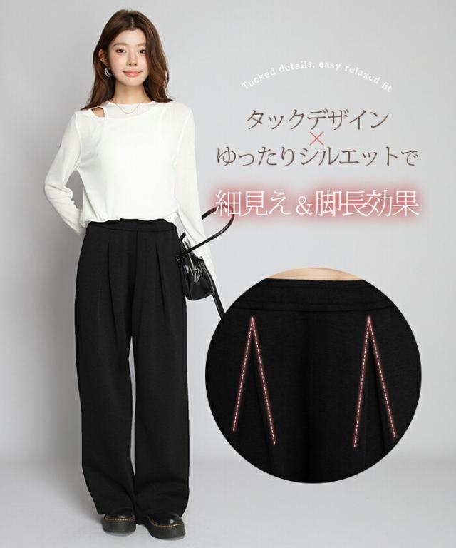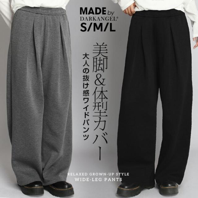 1,500円OFFクーポン!パンツ ワイドパンツ タック入り ハイウエスト美脚 体型カバー きれいめウエストすっきり オフィス 通勤 オンオフ兼用 レディース伸縮性【 美脚&体型カバー大人の抜け感ワイドパンツ 】ダークエンジェル ●即納●