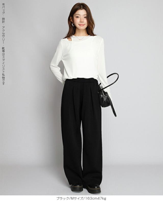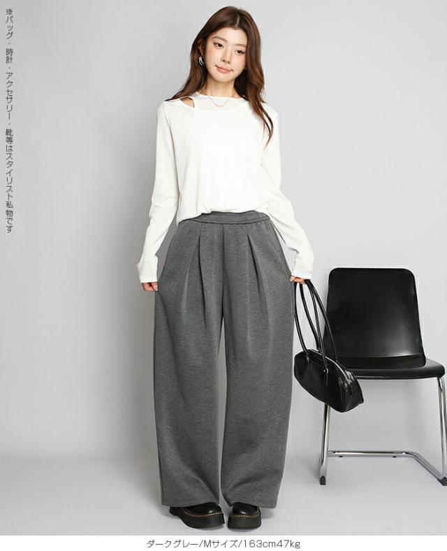 【美脚&体型カバー!大人の抜け感ワイドパンツ】 大人女子に嬉しい、 もちもち触感素材を使用したタックワイドパンツが新登場! リボンなしのすっきりウエストデザインで、 オンにもオフにも使える大人の万能パンツです。 ハイウエスト×ワイドシルエットで、 ラクな穿き心地なのにスタイルアップが叶う一本♪ もちもち柔らかな素材感で、穿いた瞬間から快適 リボンなしのミニマルデザインで大人っぽさUP タック入りワイドシルエットで抜け感たっぷり ハイウエスト設計で脚長効果スタイルアップ確実 【商品ポイント】 すっきり見えるウエストデザイン ベルトやリボンを省いたシンプル仕様で、トップスを選ばず着回し自在。 タック入りワイドシルエット 動くたびにきれいに落ちるラインが、大人の抜け感を演出します。 ハイウエスト×ワイドレッグ 腰まわりやヒップラインを自然にカバーし、脚長&美脚見せを叶えます。 オン・オフ対応のシンプルデザイン 通勤にも休日にも使える、頼れる一本。 【デザイン・シルエット】 もちもちとした柔らかな肌触りの新素材 伸びがよく、長時間穿いてもストレスフリー。 シワになりにくく、お手入れも簡単◎ 適度な厚みがあり、安心して着用できます。 【コーディネート提案】 シンプルデザインだから、どんなトップスとも好相性♪ シャツやブラウスと合わせてきれいめ通勤スタイルに Tシャツやカットソーでラフな大人カジュアルにも 足元を変えるだけで印象チェンジが楽しめます もちもち素材のタックワイドパンツなら、 毎日のコーデに心地よさとトレンド感をプラス! 【Color / Size】 カラーバリエーション: ブラック /ダックグレー サイズ展開: S / M / L (ウエストゴム仕様で、サイズ選びも安心♪) |