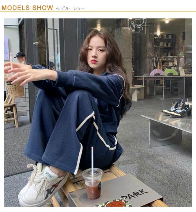 | ジムの行き帰りの移動着としてや普段着、部屋着に。 素敵な韓国風ジャージ上下セット。 フード付きで気温やインナー、アウターにあわせて長い期間着用できます。 ランニングやウォーキング、ジョギングなど運動着スポーツウェアとしてはもちろん、ルームウェアや普段着としてもおしゃれで汎用性の高いジャージ上下セットです。 | |