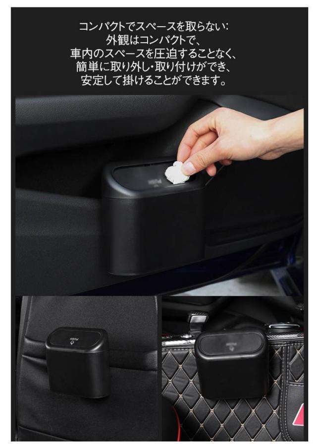 | 大容量軽量の車載ゴミ箱。 多機能デザイン:取り外し可能なフックが付いており、車内の適切な位置に掛けることも、車に貼ったり、クリップで固定したりすることができ、ゴミを簡単に取り外して捨てることができます。 高品質な素材:高品質で衛生的な素材を使用しており、安全に使用できます。 コンパクトでスペースを取らない:外観はコンパクトで、車内のスペースを圧迫することなく、簡単に取り外し・取り付けができ、安定して掛けることができます。 無臭で美しい:シンプルで美しいデザインは実用的であるとともに、車内を清潔に保ちます。 ゴミの投入口が便利:上に開くフタのデザインで、投入口が設置されており、ゴミの投げ込みがとても簡単です。 簡単に清掃可能:フタを開けることでゴミ袋を取り付けられ、定期的な掃除が便利です。 | |