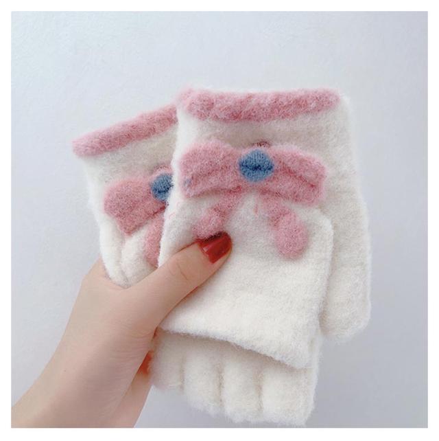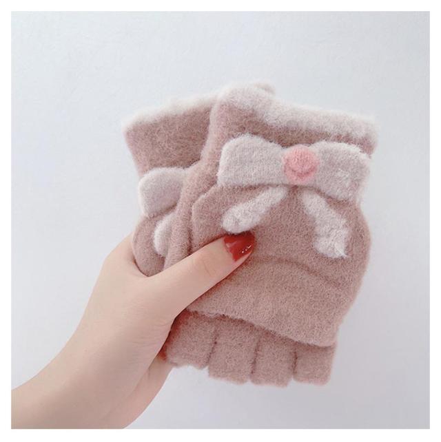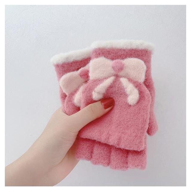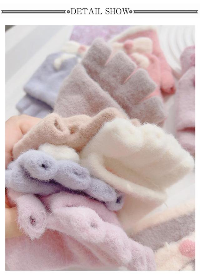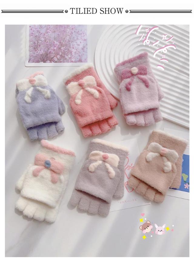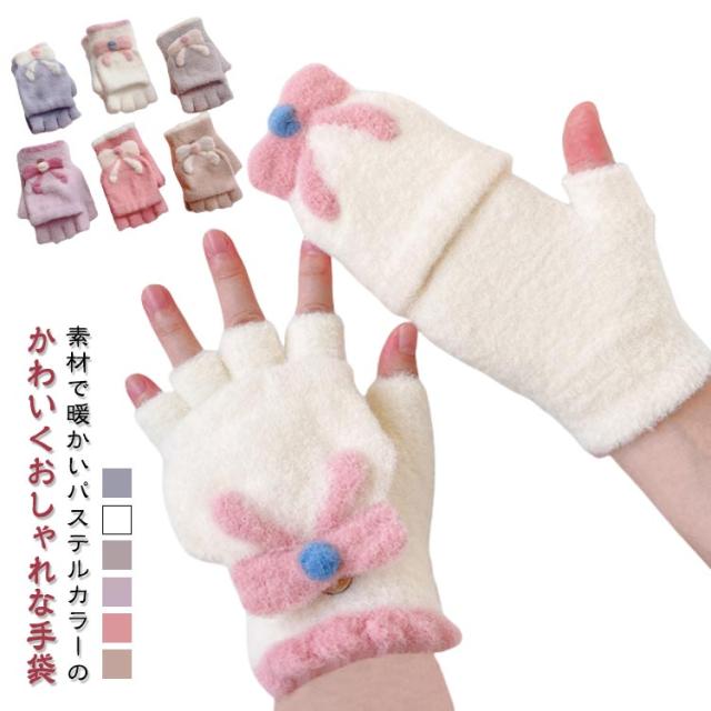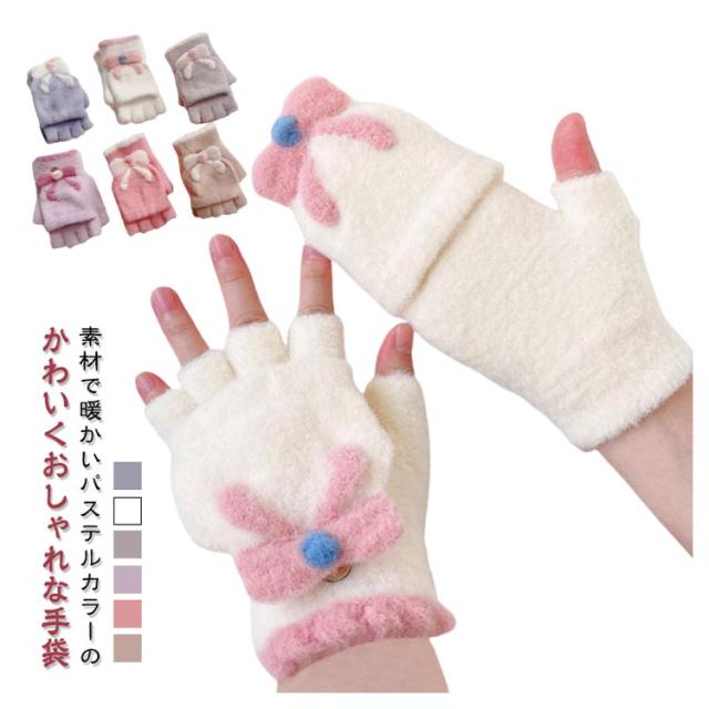 2way ミトン 2way レディース 手袋 指なし キッズ 秋冬 ジュニア リボン パステルカラー ふんわり ふわふわ 学生 裏起毛 かわいい おしゃれ 起毛 スマホ対応 あったか 暖かい フィンガーレス 女子 防寒 通学 子ども用 グローブ 手ぶくろ