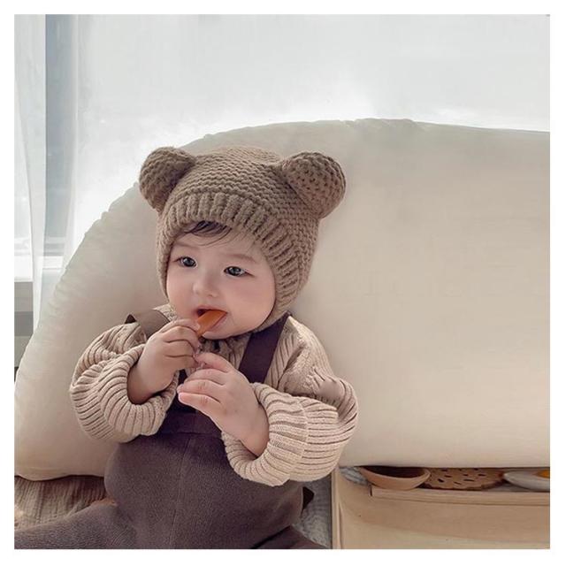ニット帽 くま耳 くま キッズ帽子 赤ちゃん 子ども帽子 くま 帽子 キッズ あったか ニットキャップ ニット ベビー帽子 ベビー 紐付き 耳当て 耳保護 耳付き あごひも 伸縮性高く 頭優しい 保温 防寒 寒さ対策 通園 送料無料